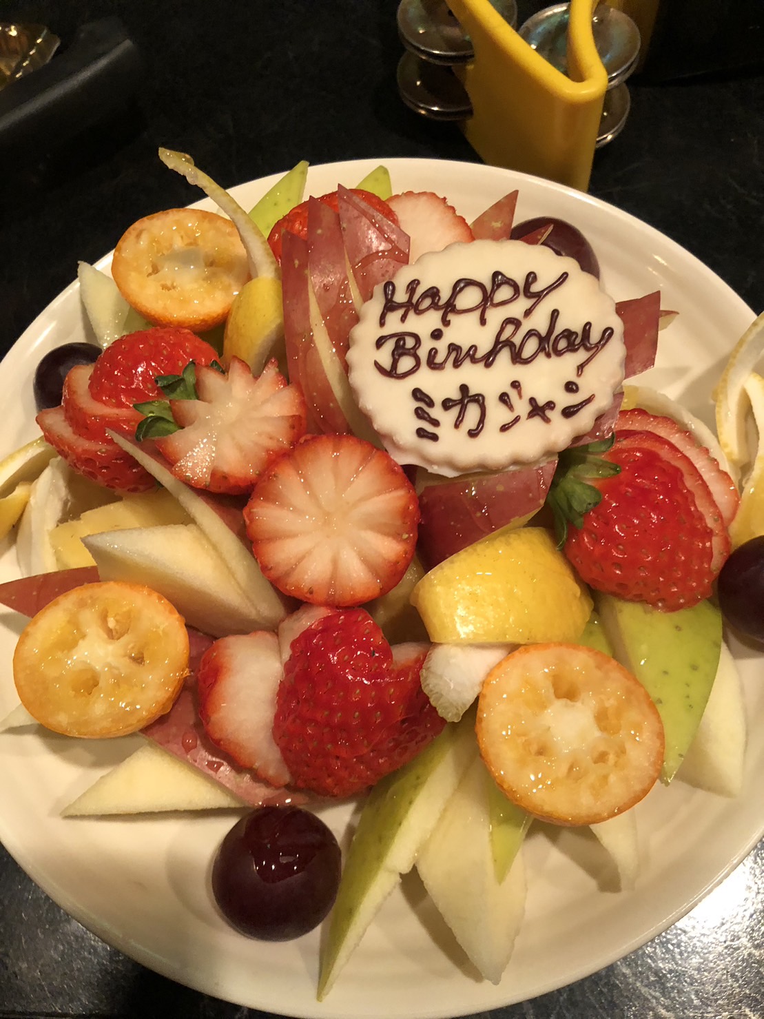お店では、たくさんのお客様にお越しいただき、サプライズでケーキやフルーツをいただきました。